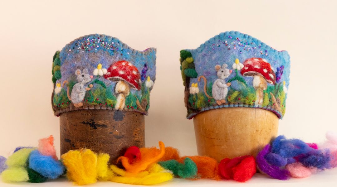 - Needle felt dimensional shapes like mushrooms and mice