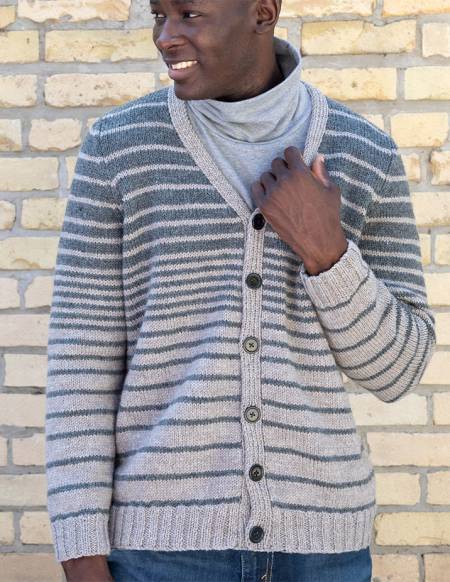 Yarn: Patons Classic Wool Worsted (3.5 oz/100 g; 194 yds/177 m) Natural Mix (MC) 5(5, 5, 5, 6, 6) balls; Dark Gray Mix (Contrast A) 3(3, 4, 4, 5, 5) balls