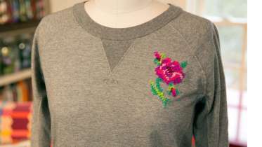 Add an element of handwork and romanticism to store-bought clothing with this needlepoint project. Anna introduces you to waste canvas, a fabric that allows you to add a design to any clothing or material. This technique will have you seeing the potential for embellishing all kinds of clothing and materials, especially in this juicy color palette.