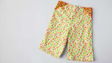 This adorable baby wardrobe staple can be made for boys or girls in prints or solids. The elastic waist means no fussy closures, and the faux pocket detail adds a sweet handmade touch. After you make your first pair and see how quickly these come together, you’ll be raiding your stash so all the adorable babies you know and love can rock a pair of these pants.