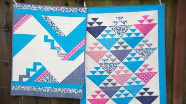 In this class, quilting expert Sue Nickels and her daughter Ashley present two fun projects in their preferred styles—Sue is a traditional quilter and Ashley is a modern quilter. Though they each used the same fabrics, their finished quilts have totally different aesthetics. Sue’s traditional quilt has a scrappier motif, which is covered in lush, machine-quilted feathers, while Ashley’s modern quilt is made up of clean, geometric shapes and criss-crossed diagonal quilting lines. No matter what your style, you will surely learn a lot about quilting from this mother-daughter team.