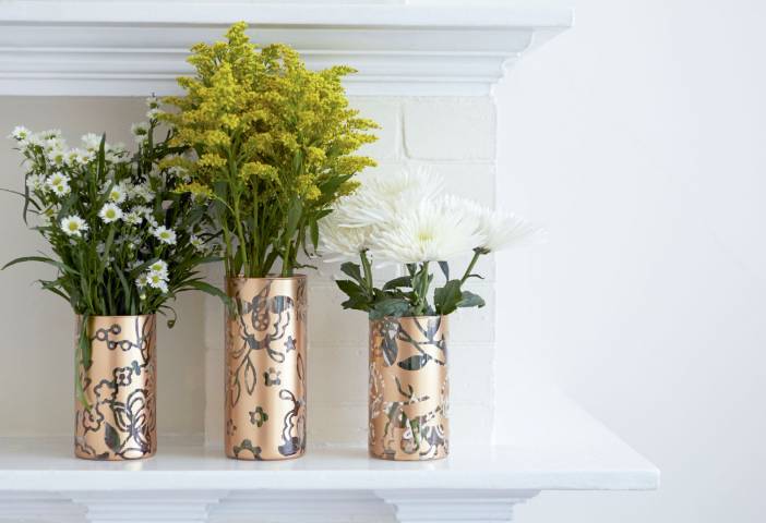 Upcycle old vases or bottles with this fun, quick Cricut project. Courtney demonstrates how to use the Cricut Explore to create a floral stencil, and then she spray-paints the pattern onto a glass vase. Drop in a votive or add some water with your favorite fresh flowers and you will have a lovely new table decoration.