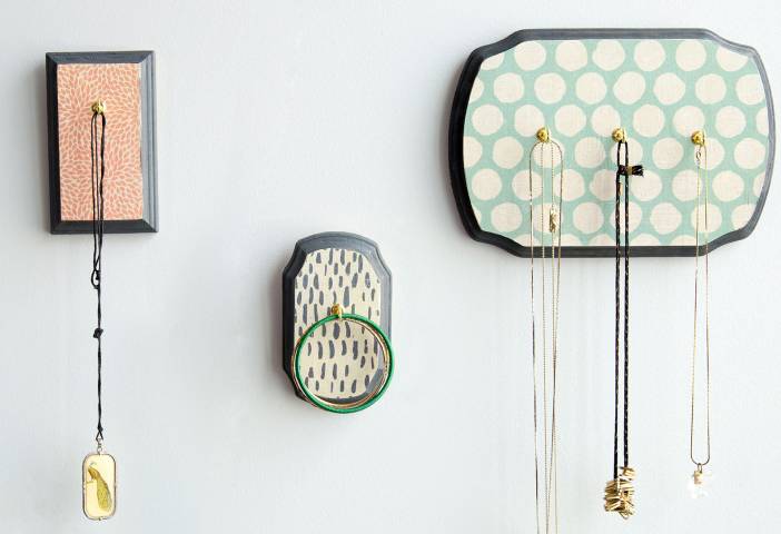 If your jewelry collection is in need of some organization, this class will help set you straight. Courtney Cerruti shares a quick and easy idea for a jewelry hanger that utilizes decoupage and a little bit of hardware. Courtney shows you how to properly apply Mod Podge to adhere pretty paper to a wooden placard, and how to paint the beveled edges with a foam brush. After that, install some simple hanging hardware and you’ll be ready to display your necklaces, bracelets, earrings and rings.
