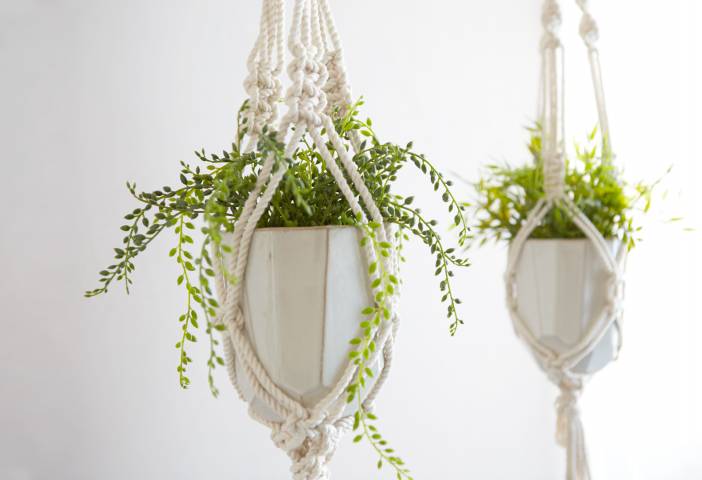 Learn how to create the most iconic of all macramé projects: the Plant Hanger. Emily Katz shows you how to create a hanger out of cotton rope tied into simple square knots and half square knots. This project is totally customizable and can work with planters of any size. Emily will show you how to calculate the proportions of your planter and construct a hanger that will hold the pot perfectly.
