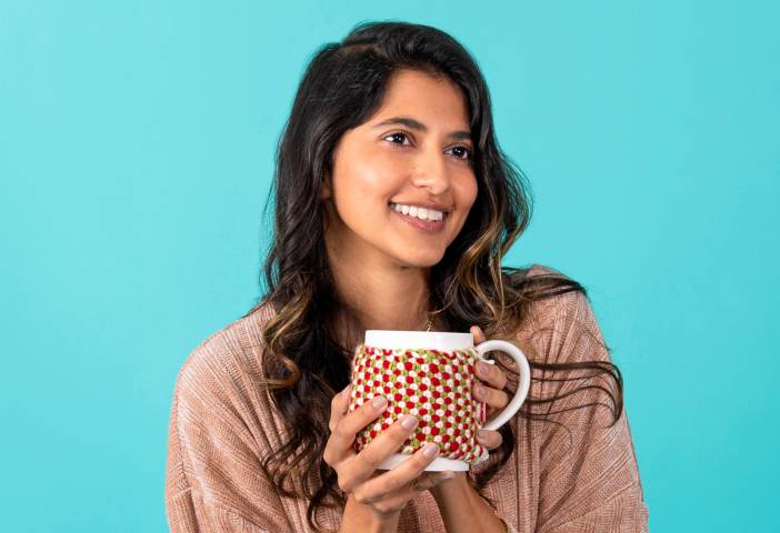 Keep your mug toasty warm this winter with a sweet knitted mug cozy. Liana Allday shows you how to knit this tri-colored cozy in linen stitch. Along the way, you’ll learn how to keep track of right and wrong sides and which color you’re using, and how to create a button loop by chaining with a crochet hook. The resulting cozy makes for a great holiday gift, especially when paired with a special mug.