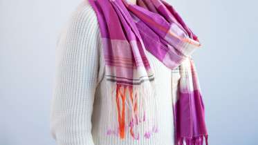 Using the inherent properties of yarn-dyed fabric, you can create a beautiful, all-seasons fringed scarf. Anna Maria Horner shows you how to identify the warp and weft threads in woven fabric. Then, you'll learn how to sew straight stitch lines along the edges and remove weft threads to create a pretty, delicate fringe.
