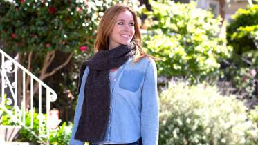 Bundle up in style with a gloriously bulky super scarf. Designed by Yarnspirations, this oversized scarf features a 12-row stitch pattern that creates a gorgeous overall texture. Faith Hale shows you how to get started, work the Dew Drop pattern, and make super-sized tassels to finish off the corners. Worked in a super bulky yarn, the scarf knits up quicker than you might think. For even more Super Scarf inspiration, check out 12 more fabulous knit and crochet patterns from Yarnspirations here.