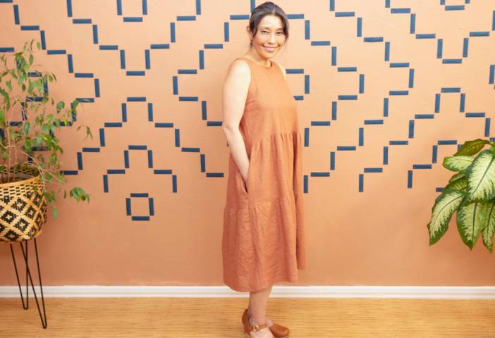 Take your custom front torso sloper from Sanae Ishida’s foundational class and turn it into a beautifully fitted, sleeveless tiered dress. Beloved instructor and pattern maker Sanae guides you through each step, from transforming your sloper into a dress bodice to gathering the skirt, adding pockets, and customizing details like shoulder width and number of tiers. It's a perfect project for practicing precision while embracing creativity and personal style.