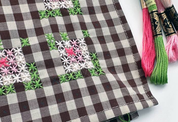 Join Blair Stocker & Creativebug Live to stitch a spring bandana using chicken scratch embroidery. This vintage technique is easy to learn and customize and is always stitched on gingham check. In this beginner-friendly class, Blair shows you how to transform a simple piece of gingham fabric into a charming, hand-embroidered accessory using classic chicken scratch stitching. You’ll learn her favorite tips for choosing colors, placement of the motif, and ways to change up and vary the pattern.