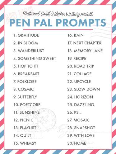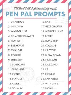 Find the Pen Pal Writing Prompts page and free templates in the downloads below.