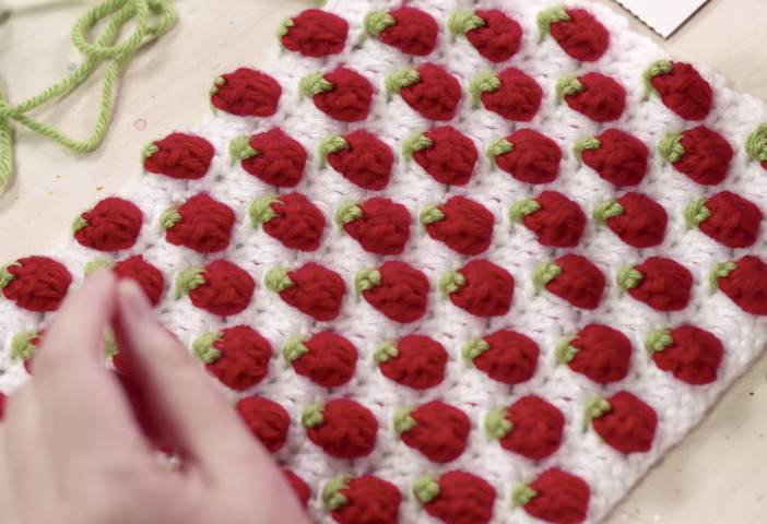 Twinkie Chan shows you how to crochet the strawberry stitch, perfect for creating fun 9" x 7" rectangles for Warm Up America. Find the pattern below. This video originally appeared live on January 16, 2020.