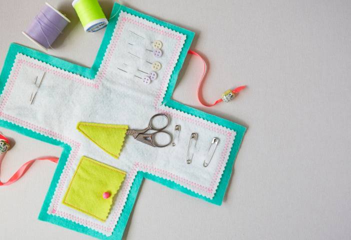 Learn how to create a colorful, travel-sized sewing kit with Annabel of Little Pincushion Studio. This simple sewing project uses a pattern template for cutting out felt pieces, and the sewing instructions are easy for new sewists to follow. Fill your kit with sewing supplies and you will be ready to stitch on the go.