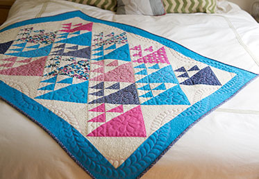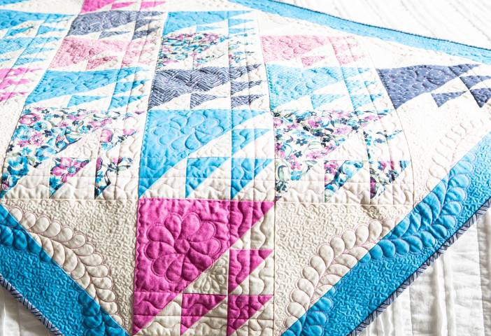 In this class, quilting expert Sue Nickels and her daughter Ashley present two fun projects in their preferred styles—Sue is a traditional quilter and Ashley is a modern quilter. Though they each used the same fabrics, their finished quilts have totally different aesthetics. Sue’s traditional quilt has a scrappier motif, which is covered in lush, machine-quilted feathers, while Ashley’s modern quilt is made up of clean, geometric shapes and criss-crossed diagonal quilting lines. No matter what your style, you will surely learn a lot about quilting from this mother-daughter team.
