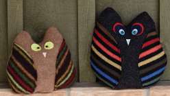 If you've ever accidentally shrunk a sweater in the wash you know all about felting wool. Recycle a thrift-store sweater into a cute felted wool softie and modify the cat pattern to be an owl.