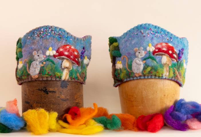 - Needle felt dimensional shapes like mushrooms and mice