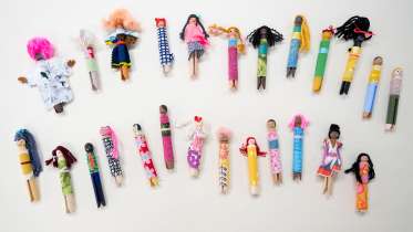 Turn wooden clothespins into dolls with Amy Karol and her daughter. Together they’ll show you how to paint the dolls, add faces and hair, and create dresses with fabric scraps. You’ll even learn how to make a sweet little felt travel pouch. Best of all, this project enables kids to add their own personality to their wee creations.