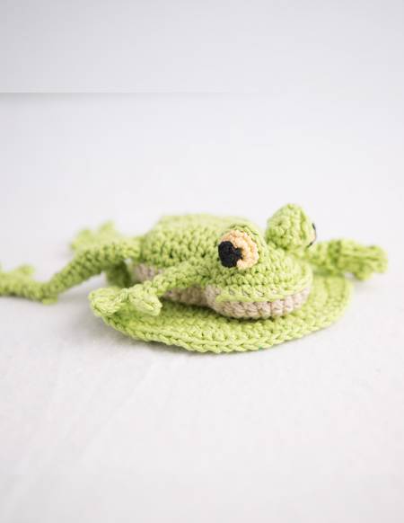 Finished Measurements: Frog: 8” long x 2” tall, Lily Pad: 6” wide